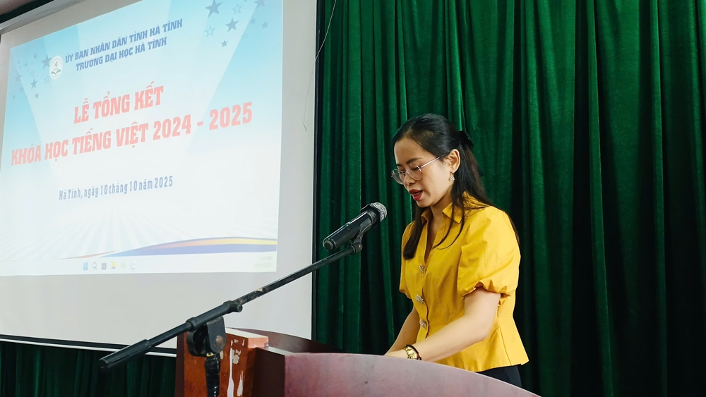 Ngày 10/10/2025, Trường Đại học Hà Tĩnh long trọng tổ chức Lễ Tổng kết khóa học tiếng Việt năm học 2024-2025 cho 77 lưu học sinh Lào K17. Buổi lễ diễn ra trong không khí ấm áp, thắm đượm tình hữu nghị Việt - Lào. Tham dự buổi lễ có sự hiện diện của TS. Trần Thị Ái Đức - Phó Hiệu trưởng Nhà trường, cùng đại diện lãnh đạo các phòng ban, khoa và toàn thể giảng viên Khoa Tiếng Việt.
