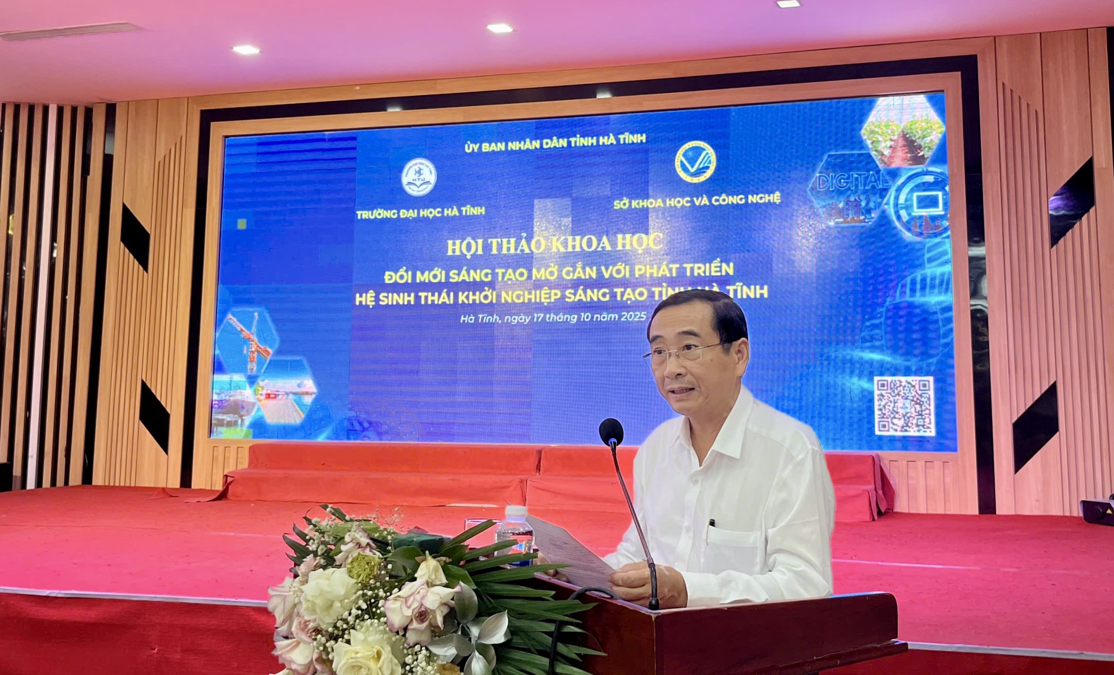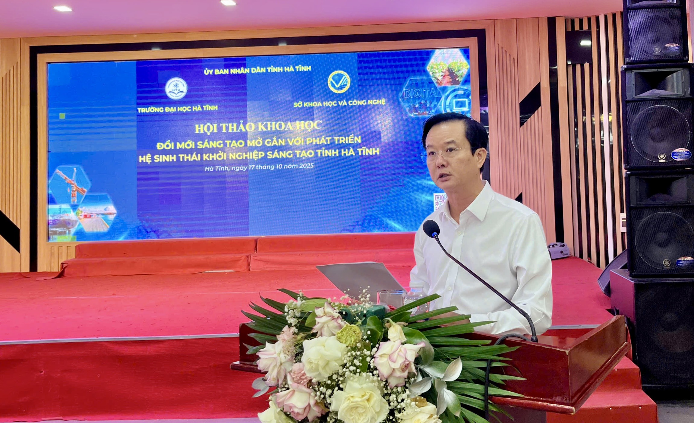 Thay mặt lãnh đạo tỉnh, đồng chí Trần Báu Hà – Phó Chủ tịch UBND tỉnh Hà Tĩnh biểu dương sáng kiến tổ chức Hội thảo, đồng thời khẳng định tỉnh luôn coi khoa học, công nghệ và đổi mới sáng tạo là trụ cột phát triển bền vững. Hà Tĩnh đang từng bước hoàn thiện cơ chế, chính sách, đầu tư cho nghiên cứu và khởi nghiệp sáng tạo, hướng tới mục tiêu hình thành hệ sinh thái đổi mới sáng tạo mạnh, có khả năng kết nối khu vực doanh nghiệp, viện trường và cộng đồng khởi nghiệp.