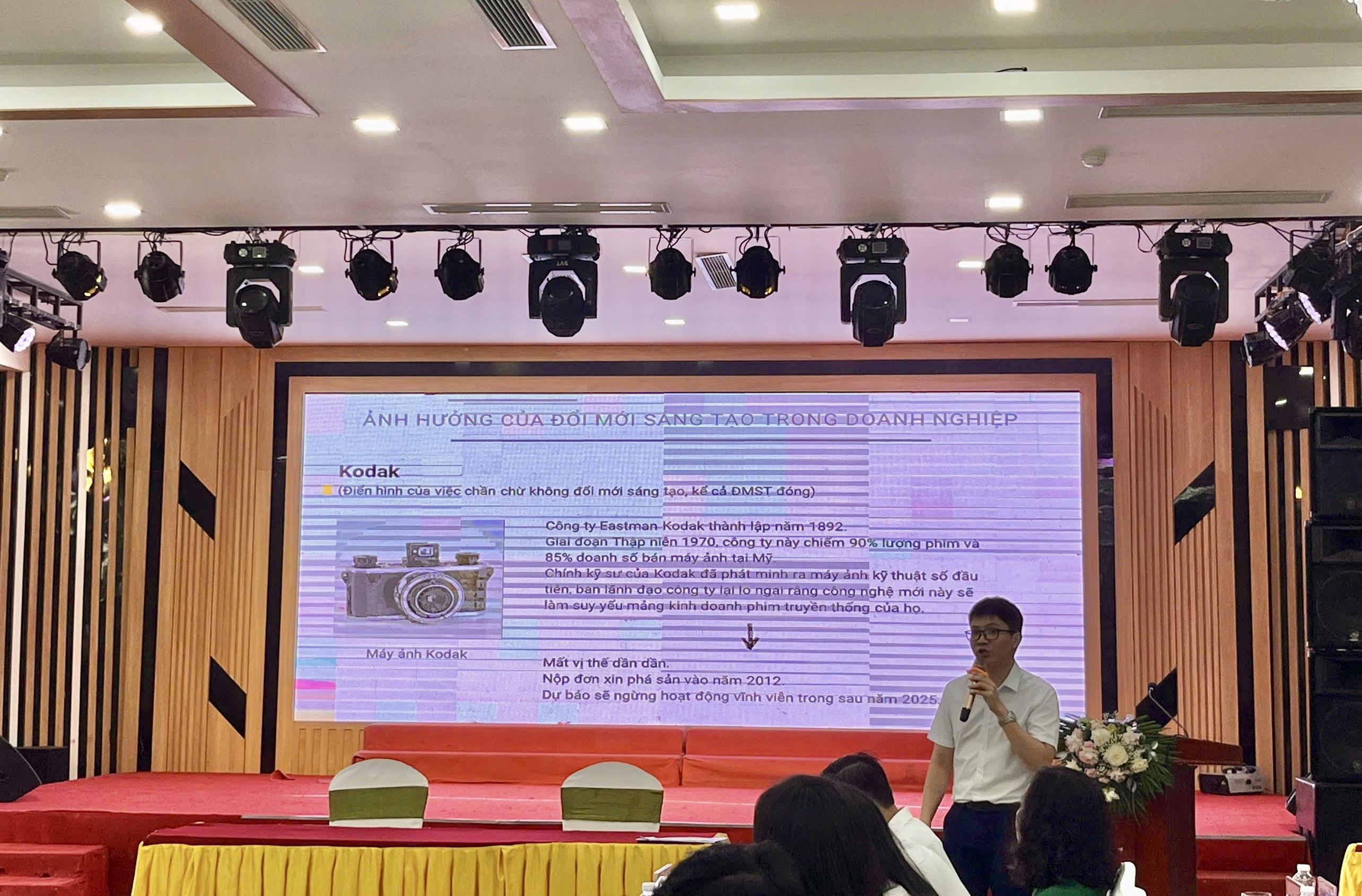Ở góc độ doanh nghiệp, ThS. Phan Ngọc Bảo – Phó Giám đốc Công ty Cổ phần Giải pháp Tổng thể Marketing Việt Nam trình bày tham luận “Đổi mới tư duy lãnh đạo – Chìa khóa thúc đẩy đổi mới sáng tạo mở trong doanh nghiệp Hà Tĩnh”, khẳng định chuyển đổi từ tư duy quản lý sang tư duy lãnh đạo sáng tạo chính là nền tảng hình thành văn hóa đổi mới trong doanh nghiệp.