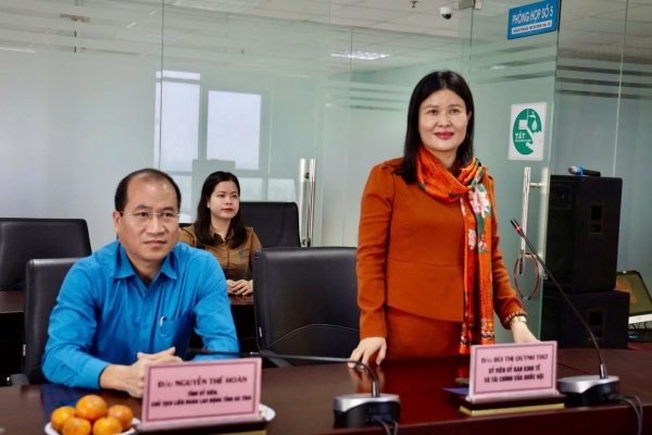Đồng chí Bùi Thị Quỳnh Thơ phát biểu chúc Tết đoàn viên, người lao động