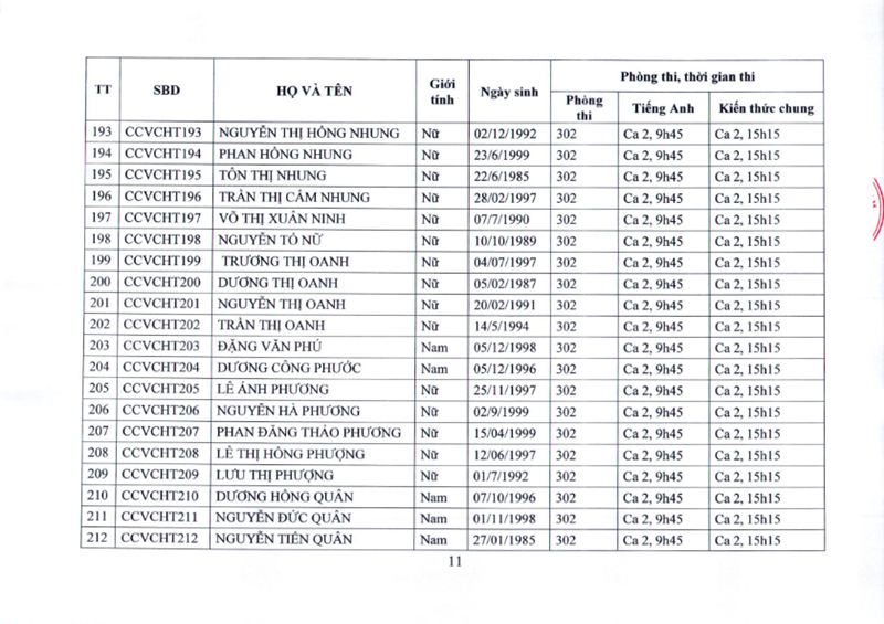 DANH SÁCH THÍ SINH DỰ THI CÔNG CHỨC, VIÊN CHỨC