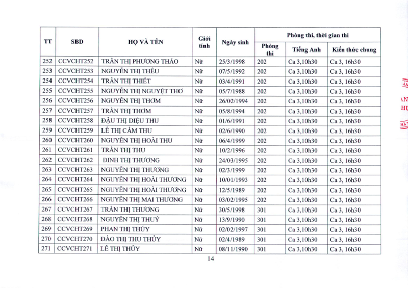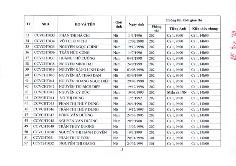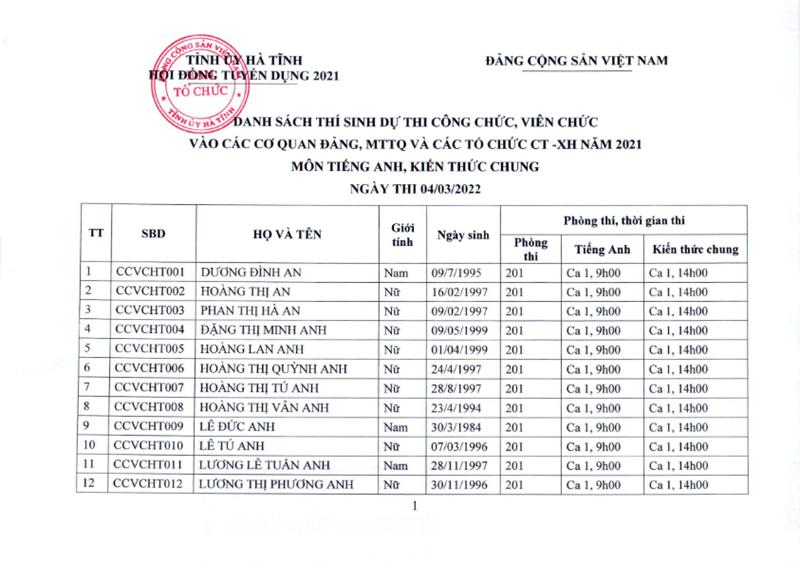 Danh sách thí sinh dự thi CCVC cơ quan Đảng, MTTQ, tổ chức CTXH năm 2021