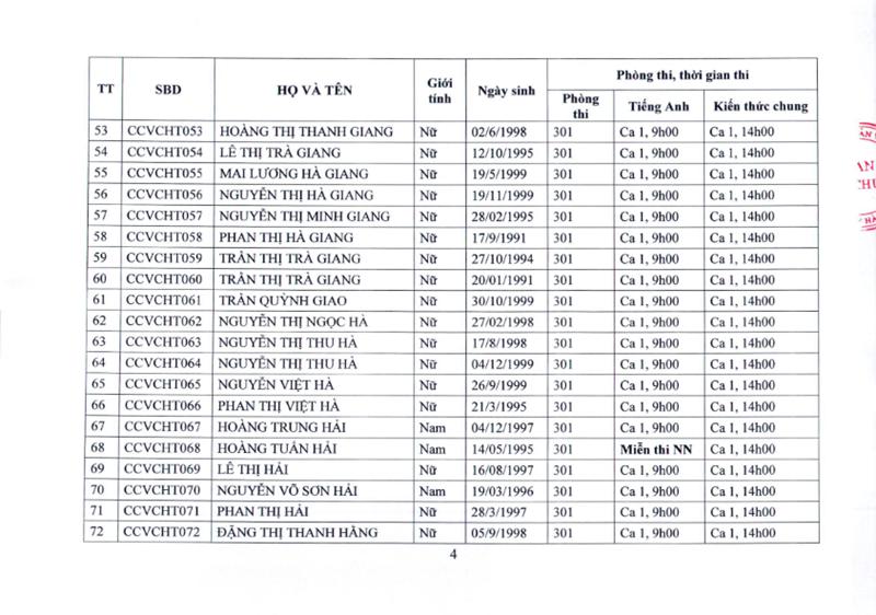 DANH SÁCH THI NGÀY 4/3/2022