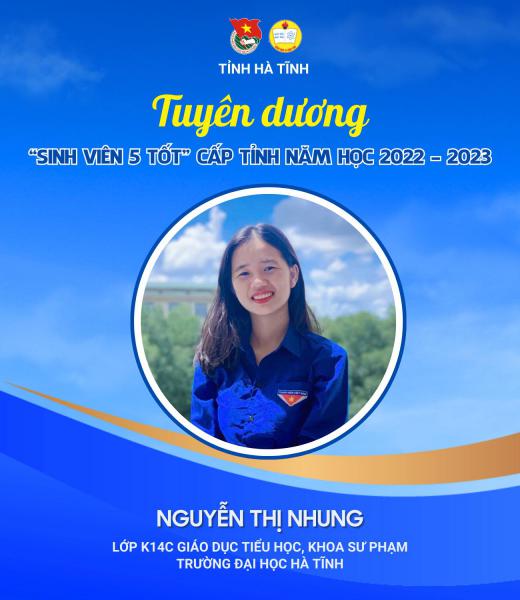 Sáng 17/11, Tỉnh đoàn Hà Tĩnh phối hợp với Sở GD&ĐT tổ chức lễ tuyên dương “Nhà giáo trẻ tiêu biểu”, “Sinh viên 5 tốt”, “Học sinh 3 tốt”, “Học sinh 3 rèn luyện” năm 2023. Tại buổi Lễ, có 10 sinh viên được nhận danh hiệu "Sinh viên 5 tốt" cấp tỉnh. Vinh dự và tự hào, Trường Đại học Hà Tĩnh có 8 sinh viên được tuyên dương.
