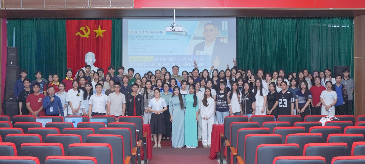 Chiều 16/10, Trường Đại học Hà Tĩnh tổ chức khai mạc Chương trình Tập huấn Khởi nghiệp đổi mới sáng tạo năm học 2025–2026 và talk truyền cảm hứng với ThS. Vũ Tuấn Anh – Phó Tổng Giám đốc Công ty Tư vấn Tái cấu trúc và Chuyển đổi số Dr. SME. Tham dự chương trình có ông Nguyễn Thanh Lam - Phó Giám đốc Trung tâm Khoa học, công nghệ và chuyển đổi số Hà Tĩnh; TS. Hồ Thị Nga - Phó Hiệu trưởng Nhà trường cùng gần 200 giảng viên, sinh viên.