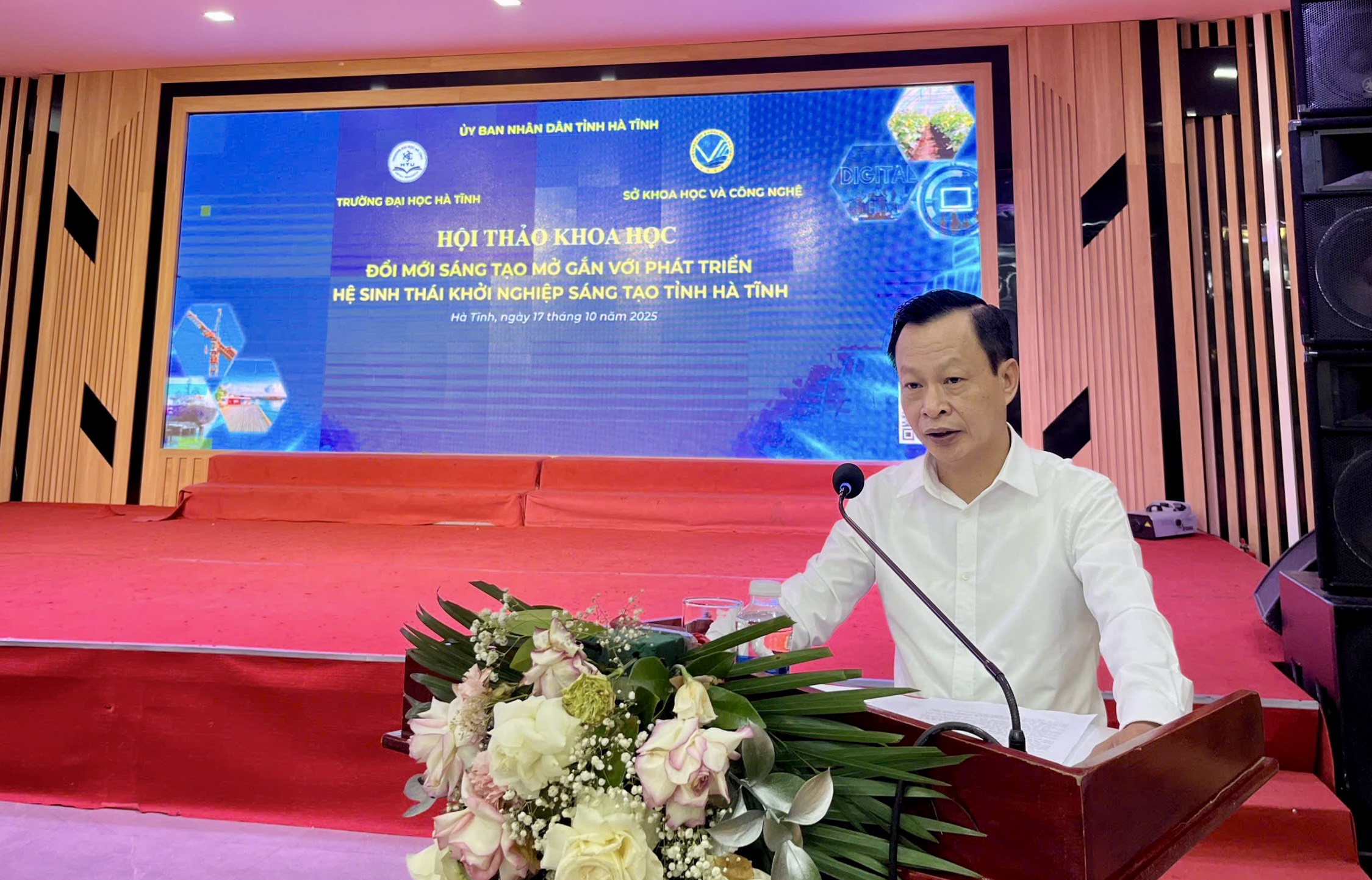 Thay mặt lãnh đạo tỉnh, đồng chí Trần Báu Hà – Phó Chủ tịch UBND tỉnh Hà Tĩnh biểu dương sáng kiến tổ chức Hội thảo, đồng thời khẳng định tỉnh luôn coi khoa học, công nghệ và đổi mới sáng tạo là trụ cột phát triển bền vững. Hà Tĩnh đang từng bước hoàn thiện cơ chế, chính sách, đầu tư cho nghiên cứu và khởi nghiệp sáng tạo, hướng tới mục tiêu hình thành hệ sinh thái đổi mới sáng tạo mạnh, có khả năng kết nối khu vực doanh nghiệp, viện trường và cộng đồng khởi nghiệp.