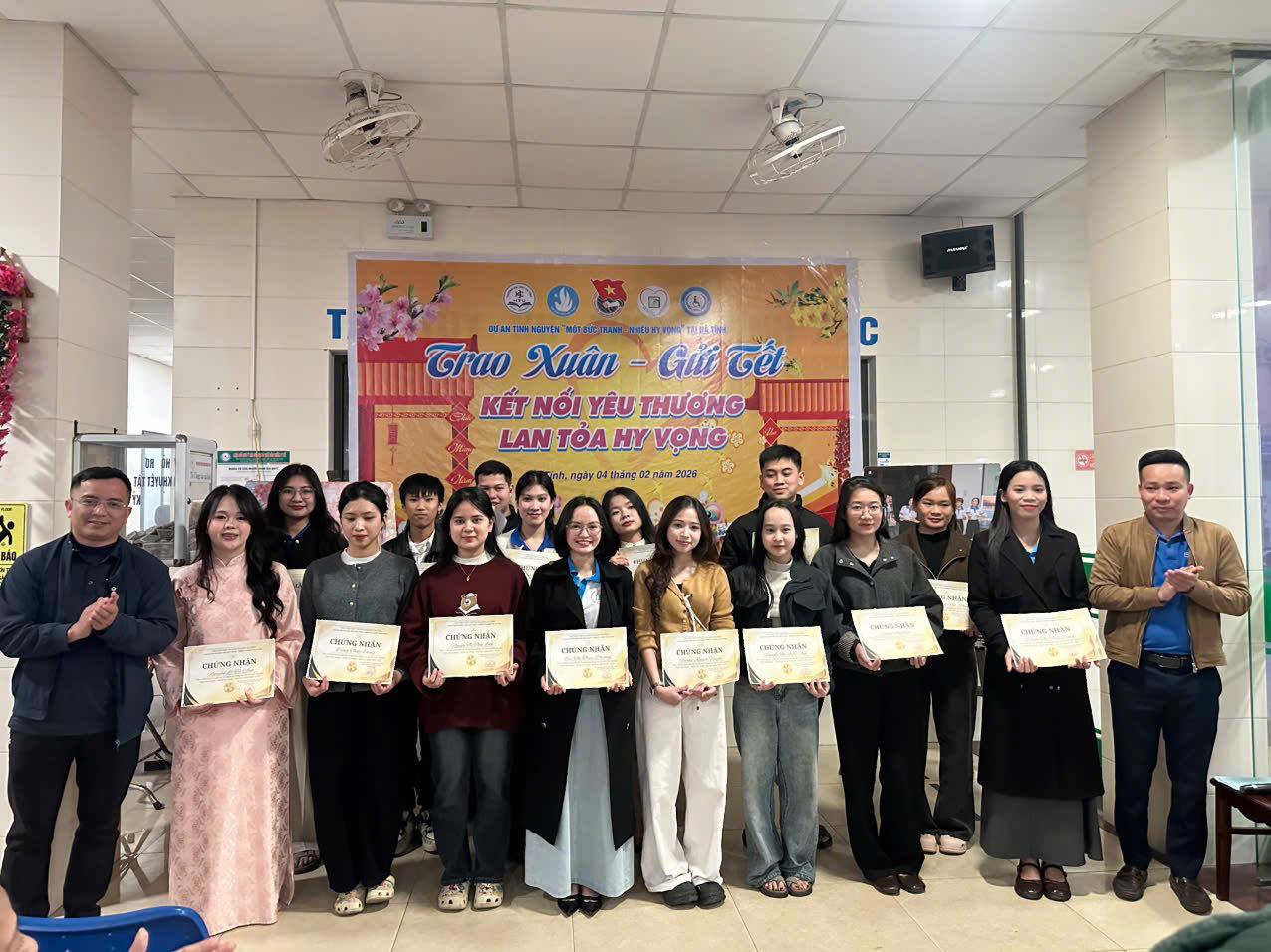 Tối 4/2, Dự án tình nguyện “Một bức tranh nhiều hy vọng” đã phối hợp cùng Bệnh viện Phục hồi chức năng Hà Tĩnh tổ chức chương trình “Trao Xuân – Gửi Tết – Kết nối yêu thương – Lan tỏa hy vọng”, mang không khí Tết ấm áp đến với các bệnh nhân đang điều trị tại đây.