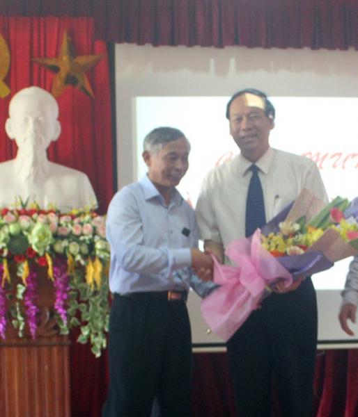 Đồng chí Hà Văn Thạch tặng hoa chúc mừng nhà trường