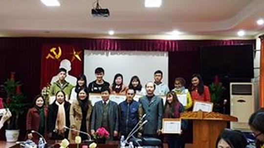Các em sinh viên đạt giải chụp ảnh lưu niệm với các thầy cô