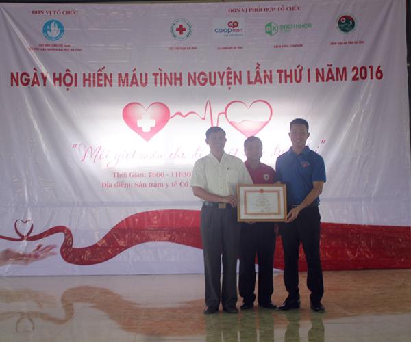 Nhân dịp này, TW Hội Chữ thập đỏ Việt Nam đã trao tặng Bằng khen cho Trường Đại học Hà Tĩnh vì đã có thành tích xuất sắc trong công tác hiến máu tình nguyện và vận động hiến máu tình nguyện năm 2015. Hội Sinh viên Trường đã trao tặng giấy khen cho 10 bạn sinh viên tiêu biểu trong phong trào hiến máu của nhà trường.