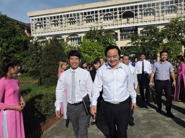 Nhân dịp về công tác tại Hà Tĩnh, sáng ngày 24/6/2016, PGS.TS Phùng Xuân Nhạ - Ủy viên TW Đảng, Bộ trưởng Bộ Giáo dục và Đào tạo cùng Đoàn công tác đã đến thăm và làm việc với Trường Đại học Hà Tĩnh. Cùng đi có các đồng chí Lê Đình Sơn – Ủy viên TW Đảng, Bí thư Tỉnh ủy Hà Tĩnh; đại diện lãnh đạo Sở Giáo dục và Đào tạo, Sở Khoa học và Công nghệ, Sở Thông tin và Truyền thông, Sở Ngoại vụ, Sở Nội vụ, Trường Đại học Huế…