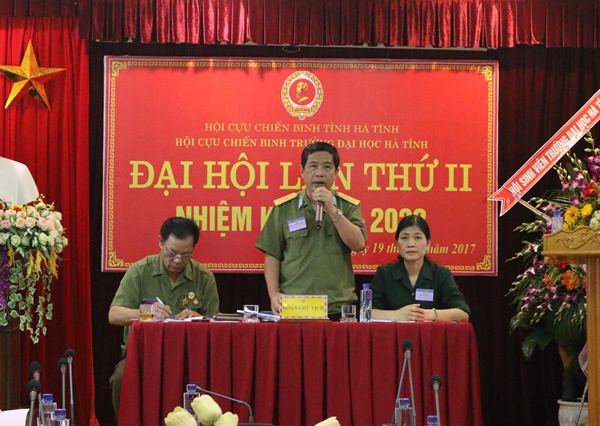 Đến dự và chỉ đạo Đại hội, đồng chí Hoàng Trọng Thâm – Phó Chủ tich Hội Cựu Chiến binh tỉnh Hà Tĩnh ghi nhận và đánh giá cao các hoạt động hiệu quả và ý nghĩa của Hội Cựu Chiến binh nhà trường. Đồng chí mong muốn các hội viên tiếp tục phát huy truyền thống anh bộ đội cụ Hồ trung thành, đoàn kết gương mẫu, bản lĩnh chính trị vững vàng, đặc biệt là trước tình hình diễn biến phức tạp, có nhiều thế lực thù địch lợi dụng chống phá nhà nước ta như hiện nay. Đồng chí đề nghị Hội đổi mới phương thức hoạt động, xây dựng quy chế, chương trình hoạt động toàn khóa để có nhiều hoạt động hiệu quả hơn.