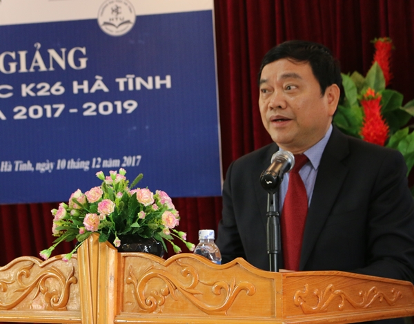 Thay mặt Ban Giám hiệu Trường Đại học Hà Tĩnh, TS. Đoàn Hoài Sơn – Phó Hiệu trưởng cảm ơn sự phối hợp, quan tâm và tạo điều kiện của Ban Giám hiệu Trường Đại học Kinh tế quốc dân để các học viên có cơ hội học tập, nâng cao trình độ tại Hà Tĩnh đồng thời mong muốn tiếp tục nhận được sự giúp đỡ của Trường trong liên kết đào tạo, chia sẻ các nguồn dữ liệu, tài liệu học tập. TS. Đoàn Hoài Sơn đề nghị các học viên chấp hành tốt nội quy, quy chế của nhà trường để hoàn thành chương trình học theo đúng thời hạn và đạt kết quả cao.