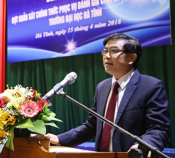 Sáng ngày 15/4/2018, Trường Đại học Hà Tĩnh đã phối hợp với Trung tâm Kiểm định chất lượng giáo dục, Đại học Quốc gia Hà Nội tổ chức khai mạc đợt khảo sát chính thức phục vụ đánh giá ngoài Trường Đại học Hà Tĩnh theo Bộ tiêu chuẩn đánh giá chất lượng giáo dục gồm 10 tiêu chuẩn, 61 tiêu chí ban hành theo Văn bản hợp nhất số 06 ngày 04/03/2014 của Bộ GD& ĐT. Quy trình tự đánh giá thực hiện theo Thông tư số 62 ngày 28 tháng 12 năm 2012 của Bộ GD& ĐT về việc ban hành Quy định về quy trình và chu kì kiểm định chất lượng giáo dục trường đại học, cao đẳng và TCCN. Đoàn chuyên gia Đánh giá ngoài Trường Đại học Hà Tĩnh có 7 thành viên, do GS.TSKH Bành Tiến Long làm Trưởng đoàn.
