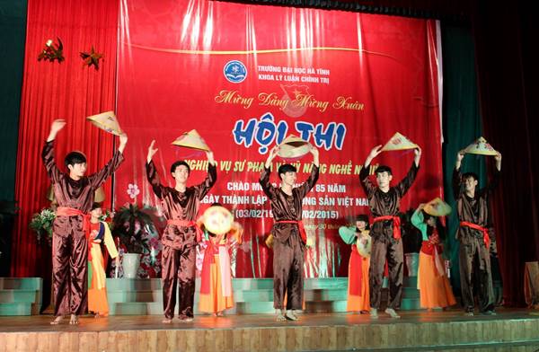 Rèn luyện kỹ năng nghề nghiệp cho sinh viên là một trong những nội dung hoạt động nhằm nâng cao chất lượng đào tạo của Trường Đại học Hà Tĩnh nói chung, của Khoa Lý luận chính trị nói riêng. Trong thời gian qua, tập thể cán bộ giảng viên, sinh viên toàn khoa đã nỗ lực, cố gắng thực hiện chuỗi chương trình của hoạt động rèn luyện kỹ năng nghề nghiệp với nhiều nội dung phong phú, thiết thực. Tối 31 tháng 01năm 2015, trong không khí xuân về, chào mừng kỷ niệm 85 năm ngày thành lập Đảng Cộng sản Việt Nam, tập thể Khoa Lý luận chính trị phối hợp với Đoàn trường Đại học Hà Tĩnh tổ chức chương trình hoạt động truyền thống thường niên “Mừng Đảng mừng xuân” ôn lại truyền thống vẻ vang của Đảng, gắn với “Chung kết Hội thi Nghiệp vụ sư phạm và kỹ năng nghề nghiệp” như là món quà kính dâng lên Đảng kính yêu và chào mừng xuân mới.